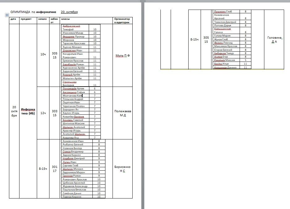 РАСПИСАНИЕ ПО АУДИТОРИЯМ