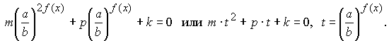 Уравнения этого вида называются однородными относительно функций a f(x) и b f(x). Делением на функцию a 2f(x), не принимающую нулевых значений, такое уравнение сводится к квадратному |