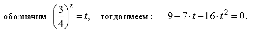 Число t2 = - 9/16 не принадлежит множеству значений показательной функции, значит далее рассматриваем только значение t = 1. |