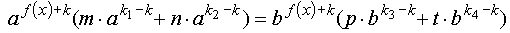 Разделив обе части полученного уравнения на множитель b f(x) + k, не принимающий значения нуль, получим уравнение вида |