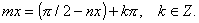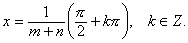 Решение. Область определения уравнения: x Î R, x ¹ (p/2 + kp)/m, x ¹ (p/2 + kp)/n, k Î Z. Для решения воспользуемся монотонностью функции tg x на интервале (– p/2, p/2) и периодичностью с периодом p, преобразовав уравнение к виду