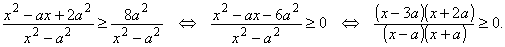 Решение. Область определения неравенства: x ¹ ± a. Приведем неравенство к виду, удобному для применения метода интервалов: