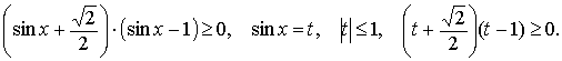 Значит, произведение двух множителей £ 0, если первый множитель sinx£0.