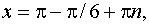 Ответ. x=5p/6 + pn, nÎZ.