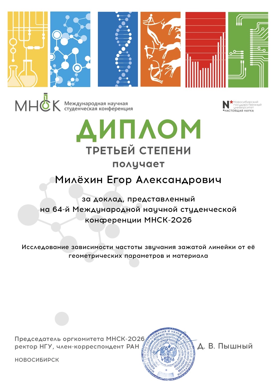 Участие и победы в таких конференциях как МНСК - это бесценный жизненный опыт, который точно пригодится в будущем. При поступлении в НГУ в 2026 году (!) в личных достижениях абитуриента Международная научная студенческая конференция НГУ 2024/2025 и 2025/2026 учебного года (школьная секция) дает 8 баллов для победителя или 5 баллов – для призера (в случае, если тематика секции соответствует одному из предметов вступительных испытаний).