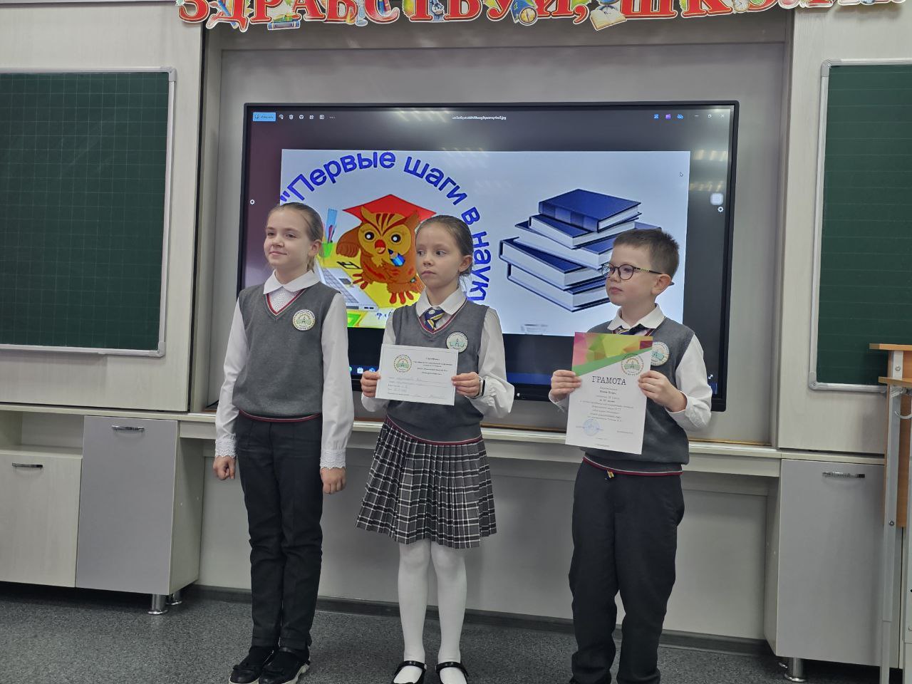 На районный этап городского конкурса «Мое первое открытие» рекомендована Темирбаева Алена 4А.