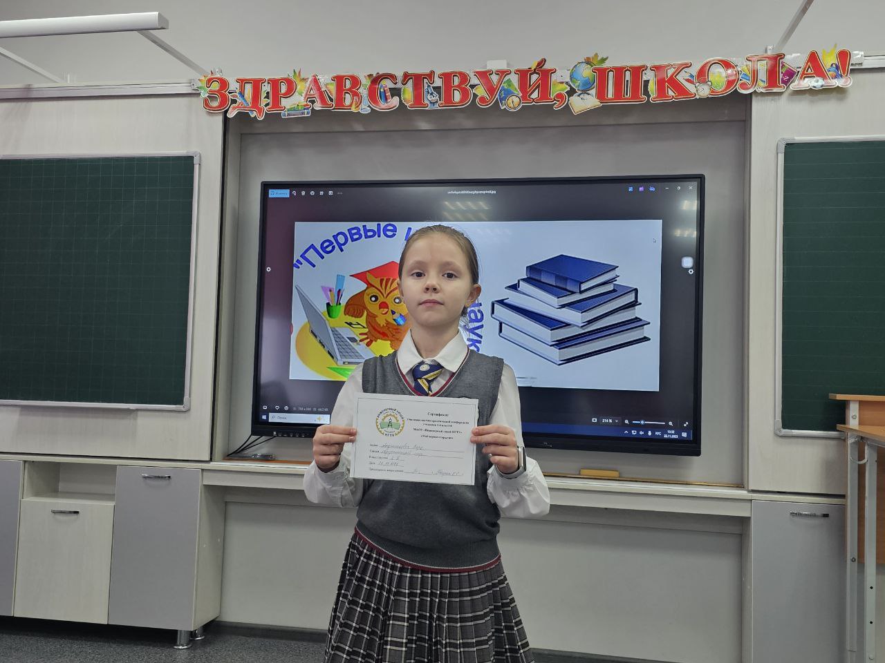 На районный этап городского конкурса «Мое первое открытие» рекомендована Трубина Алиса 3А.