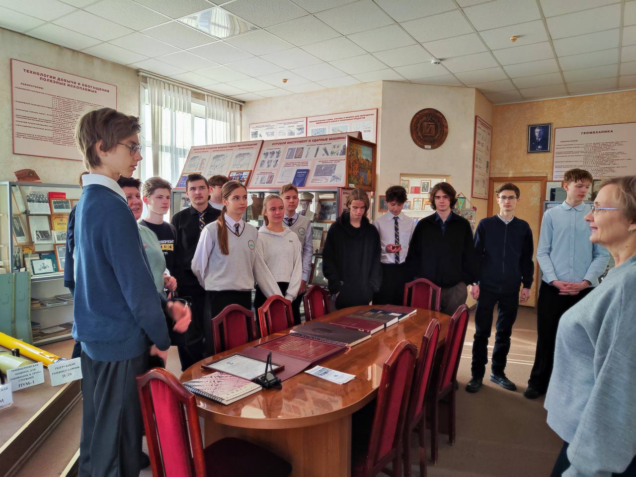 Ведущий инженер Романенко Маргарита Викторовна провела для ребят экскурсии в Музее Института, рассказала историю создания Института, о становлении академической науки в Сибири, о достижениях учёных-горняков и о жизни человека, с которого всё это началось — Николая Андреевича Чинакала, доктора технических наук, профессора, первого директора ИГД СО РАН, чьё имя он сейчас носит.