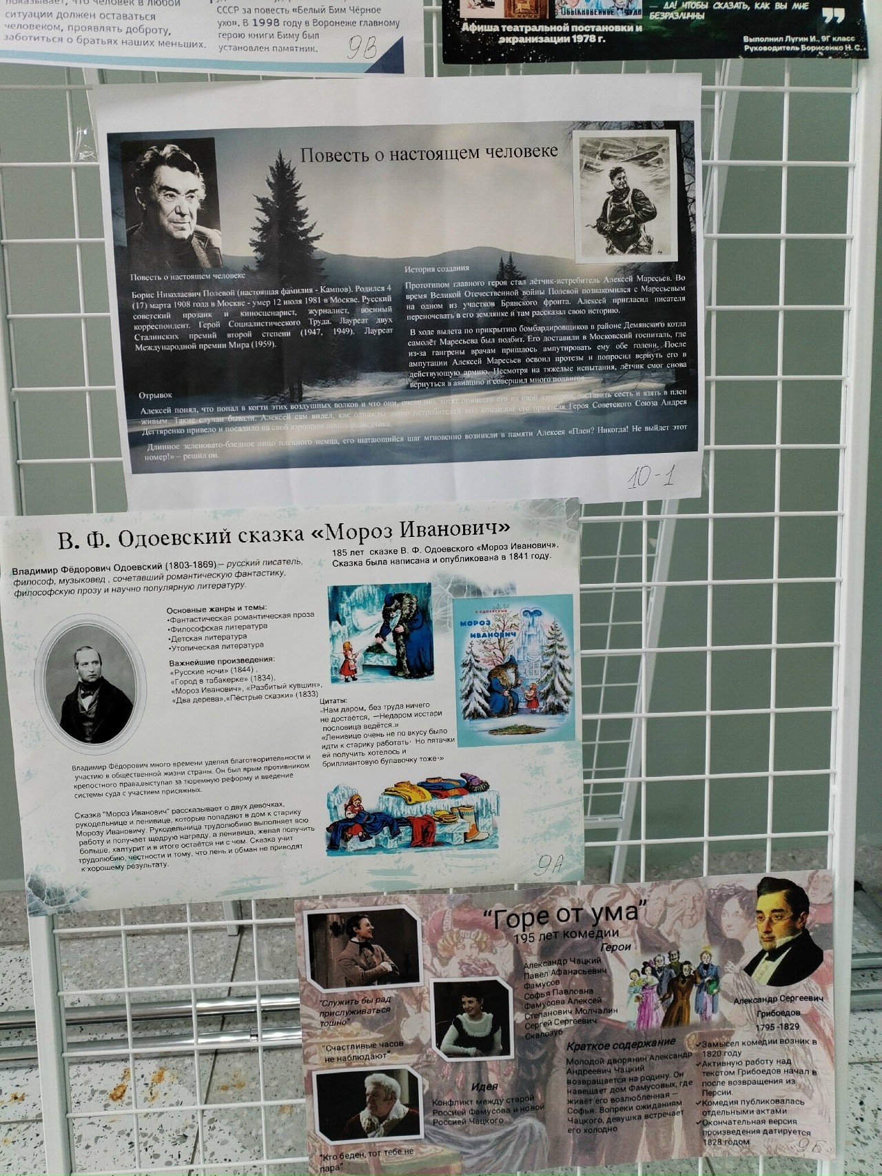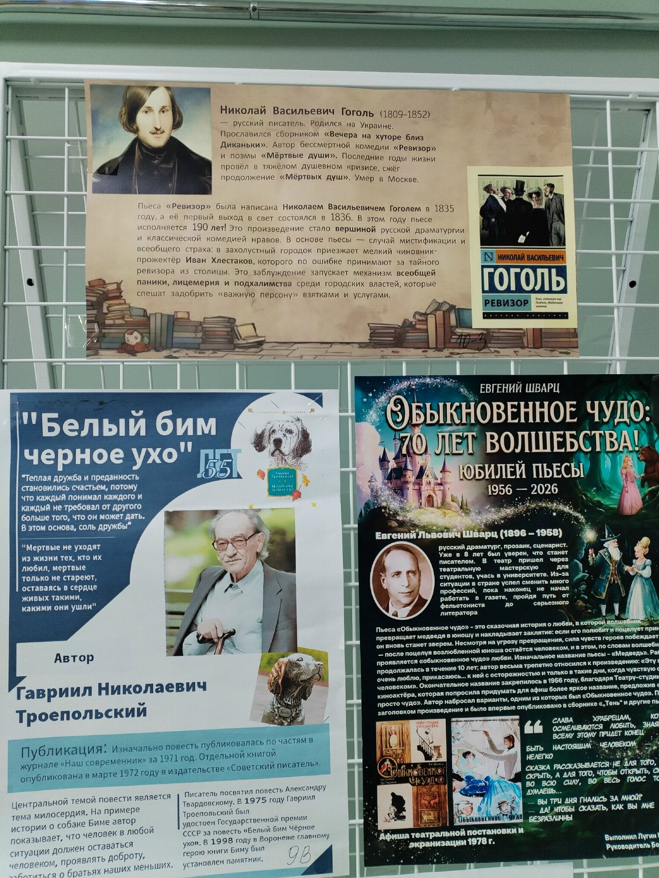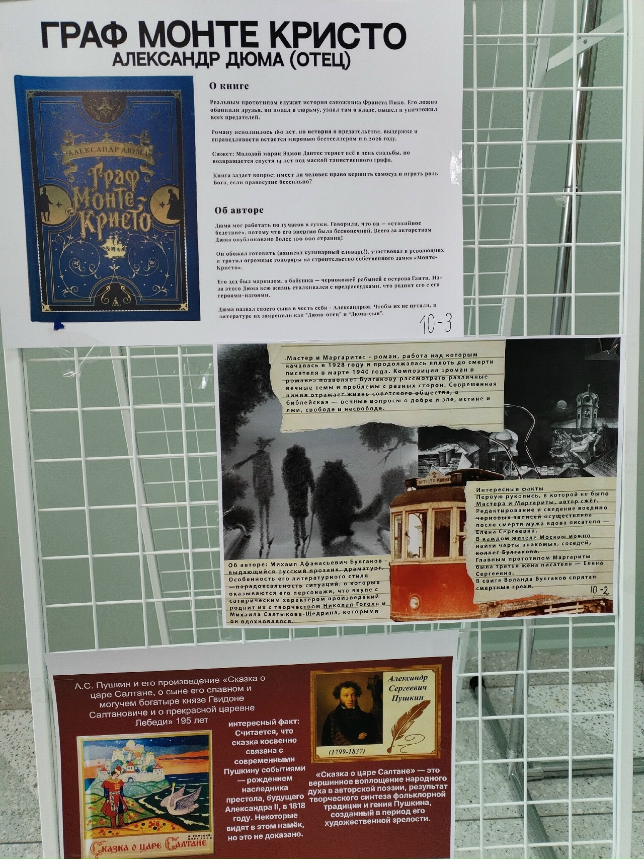 Результат этой работы уже украшает холл второго этажа! Здесь вы найдёте не просто список, а настоящую визуальную антологию произведений, которые отмечают круглые даты. Участие в этом проекте помогло старшеклассникам систематизировать знания: выйти за рамки школьной программы и увидеть литературу как живой, непрерывный процесс со своей историей; развить исследовательские навыки: нужно было не просто назвать книгу, а кратко и ярко рассказать её суть, выделить главное, заинтересовать потенциального читателя. Приглашаем всех на нашу мини-выставку в холле! Возможно, именно здесь вы встретите взгляд знакомого классика, который раньше проходили мимо. А может, яркий плакат напомнит о книге, которую вы давно собирались прочесть, или откроет для вас совершенно новое имя.