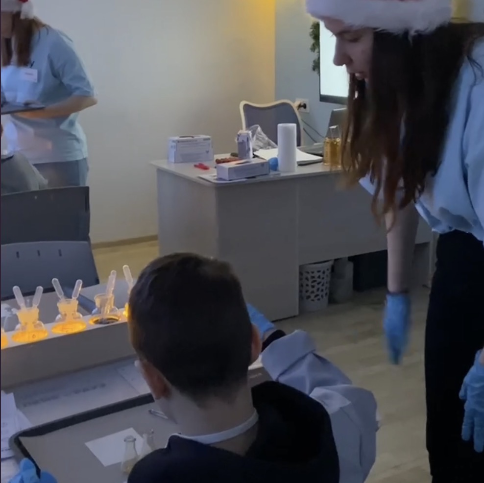 - Создание своего запаха Нового года. Это было гениально! Нам не просто рассказывали о парфюмерной химии, а дали возможность собрать собственный аромат из разных компонентов: хвоя, мандарин, корица, ваниль, даже «запах снега» и «аромат северного сияния» (как это было научно объяснено — отдельный восторг). В итоге каждый унес с собой пробирку с уникальным запахом праздника, который теперь стоит у нас на полке. Это самый личный и памятный сувенир!