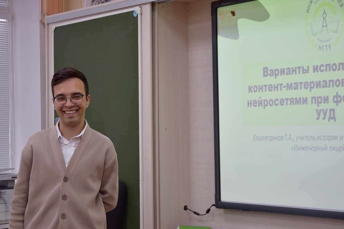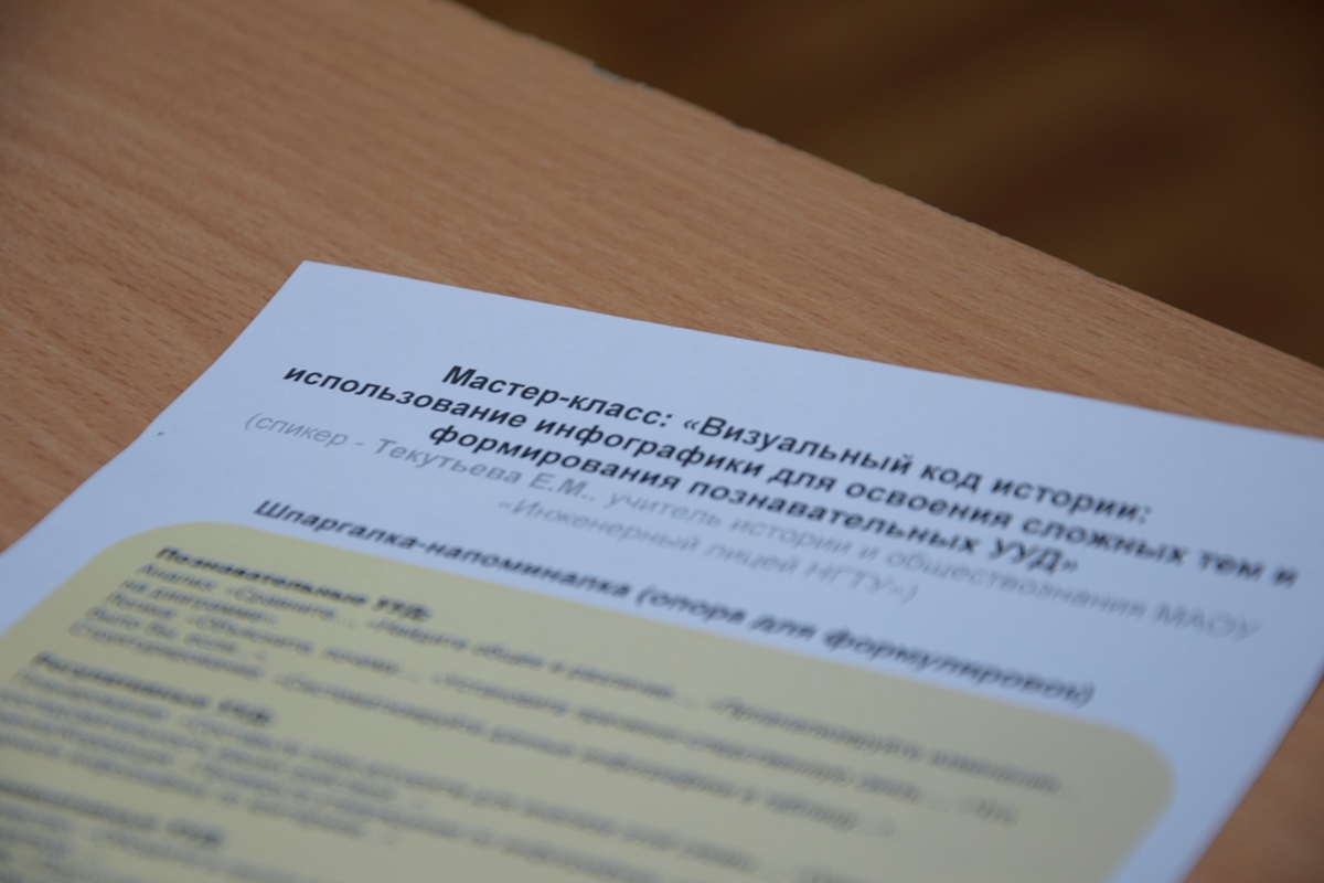 - Формирование и развитие универсальных учебных действий. Педагоги истории и обществознания обсудили роль гуманитарных дисциплин в воспитании всесторонне развитых личностей, способных применять полученные знания и умения в профессиональной деятельности. Учителями истории обществознания Инженерного лицея НГТУ Текутьевой Е.М. и Емалетдиновым Т.А. были представлены методы и приемы работы по формированию и развитию универсальных учебных действий с помощью инфографики и искусственного интеллекта. Рабе Ю.А. руководитель методического объединения учителей общественных дисциплин лицея поделилась опытом введения компонента «Краеведение» в уроки истории и внеурочную деятельность.