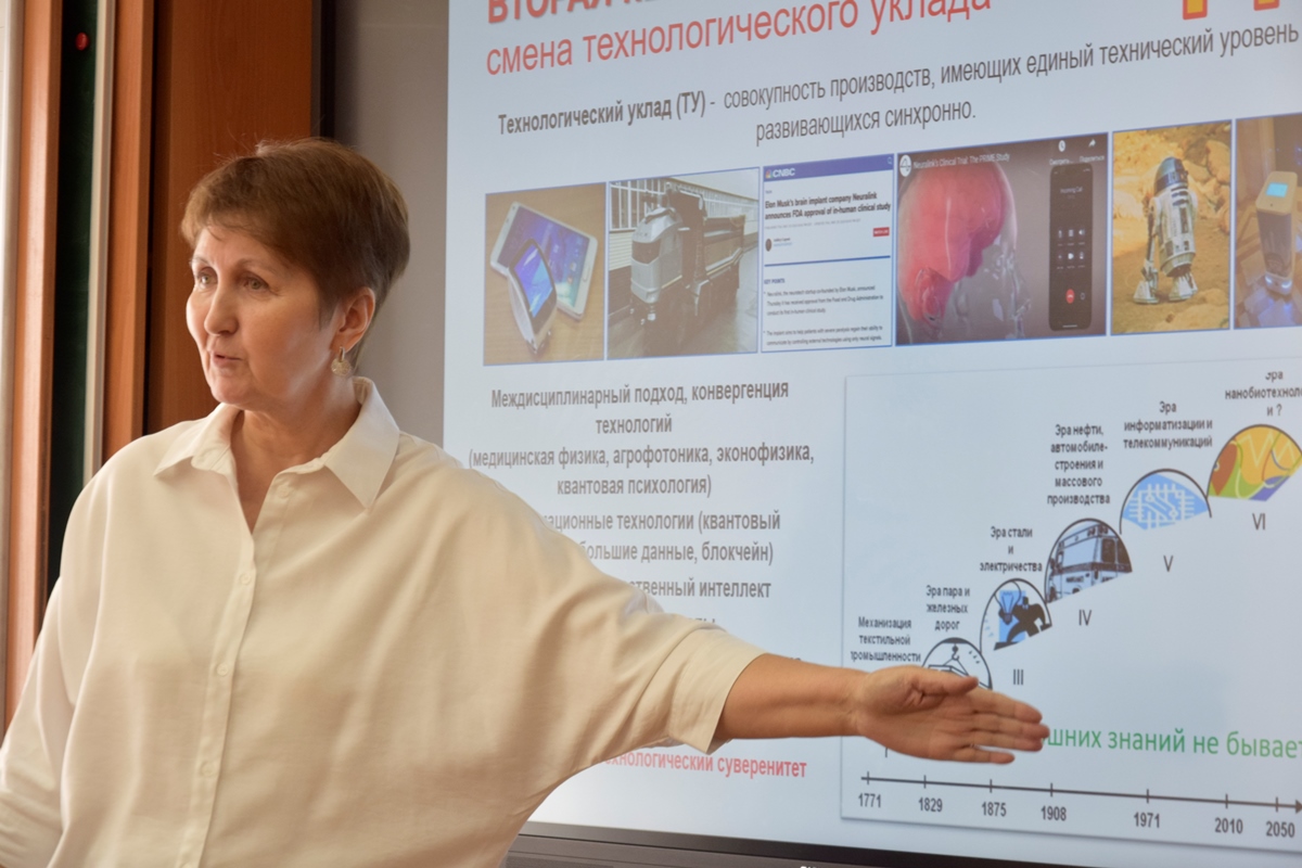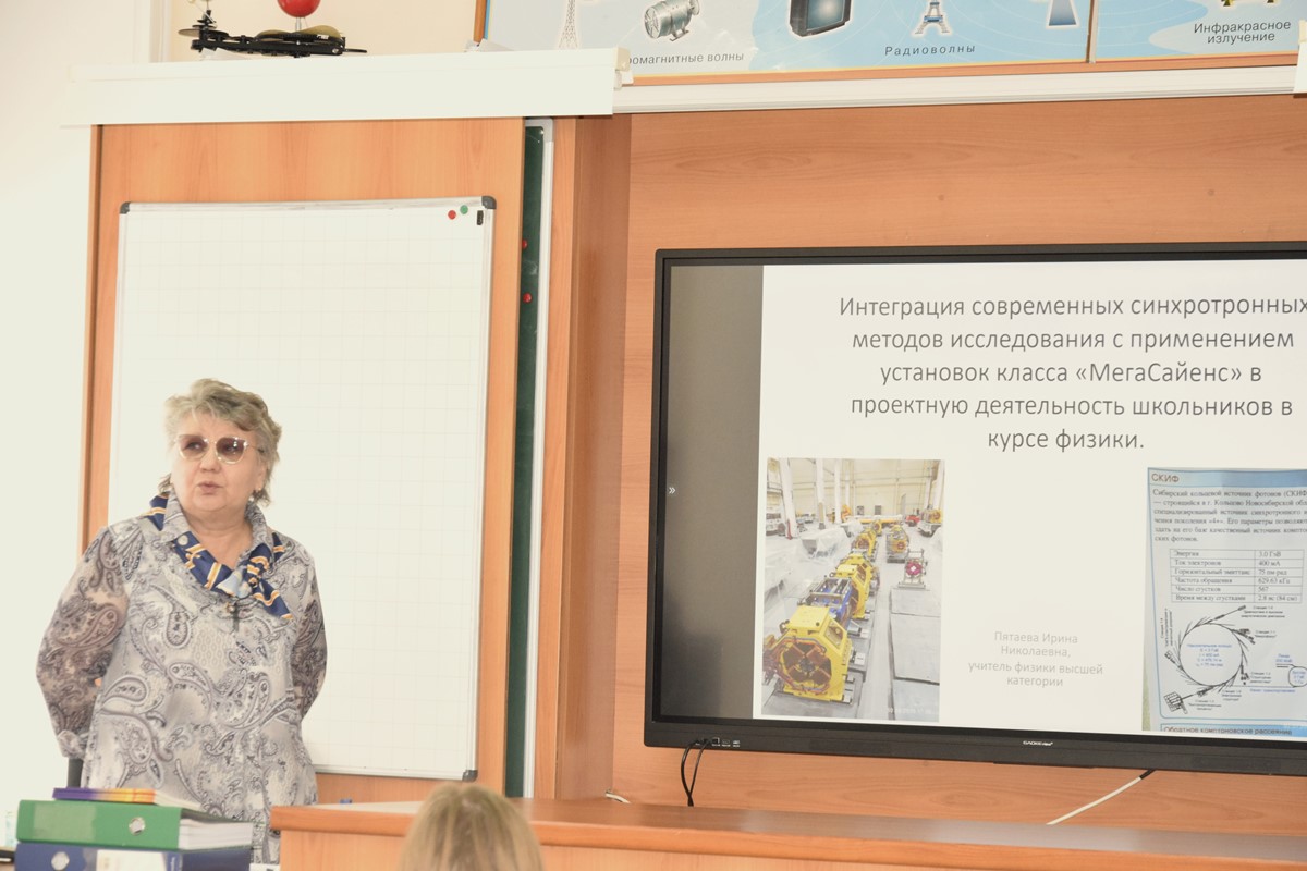 - Интеграция науки и образования, профориентация обучающихся. Спикеры подчеркнули необходимость тесного сотрудничества научных учреждений и образовательных организаций для качественного профессионального самоопределения школьников. Педагог-профориентолог лицея Козлова О.П. акцентировала внимание слушателей на важность создания условий для раннего знакомства учеников с профессиями будущего. Учитель физики Пятаева И.Н рассказала о возможностях применения установок класса «МегаСайенс» в проектную деятельность школьников в курсе физики. Учитель физики Заковряшина О.В. поделилась знаниями, полученными в рамках Троицкой школы повышения квалификации преподавателей физики «Актуальные проблемы физики и астрономии: интеграция науки и образования».