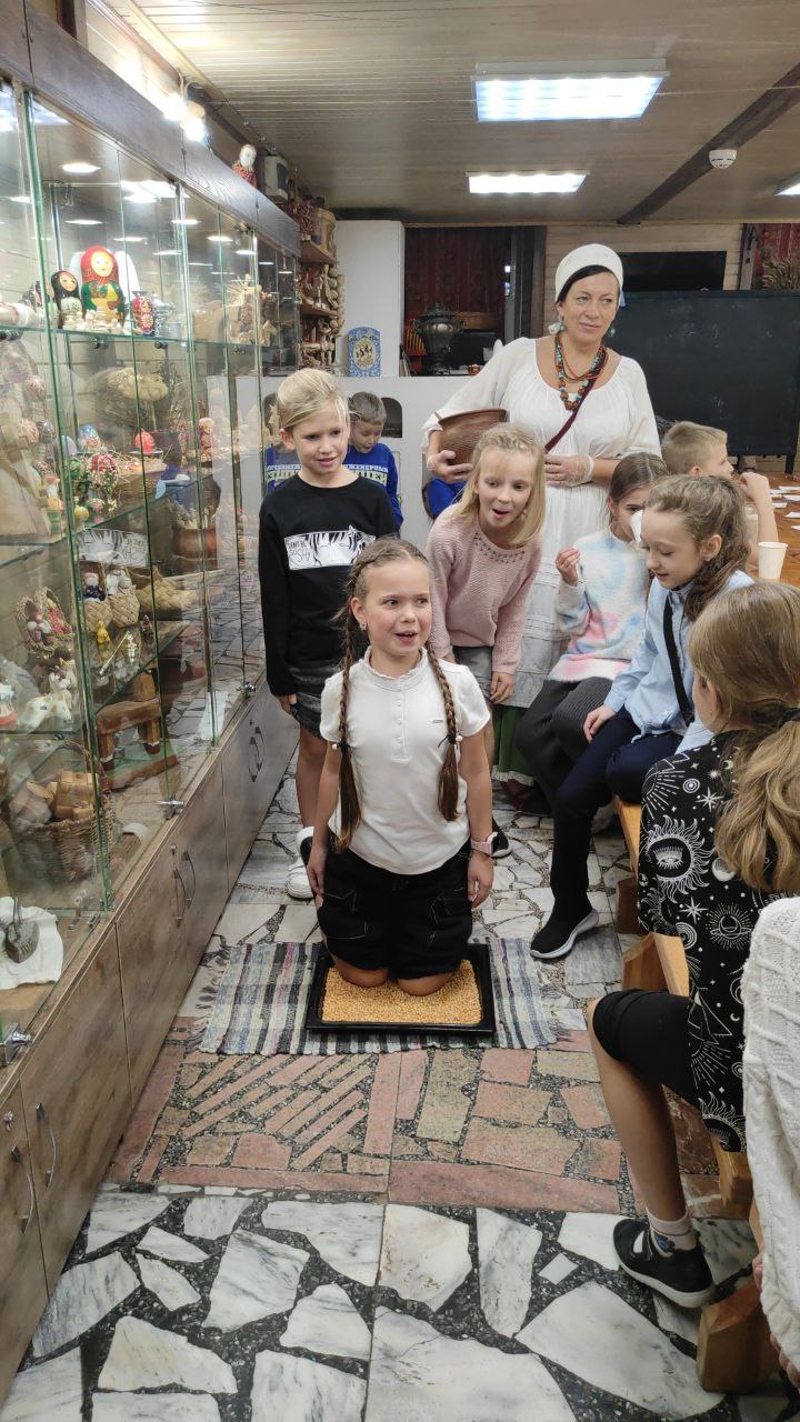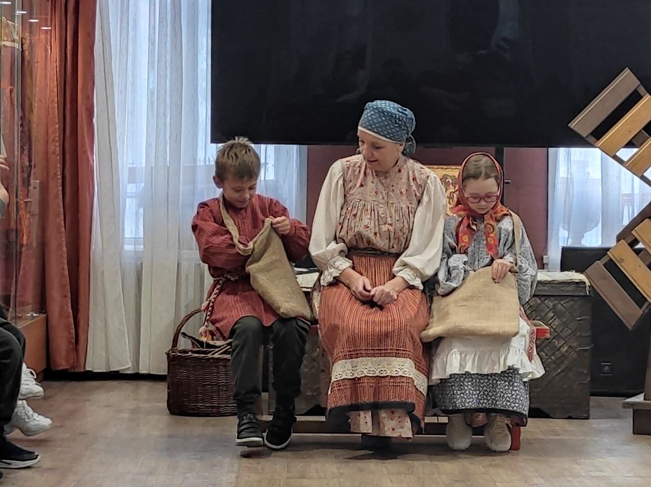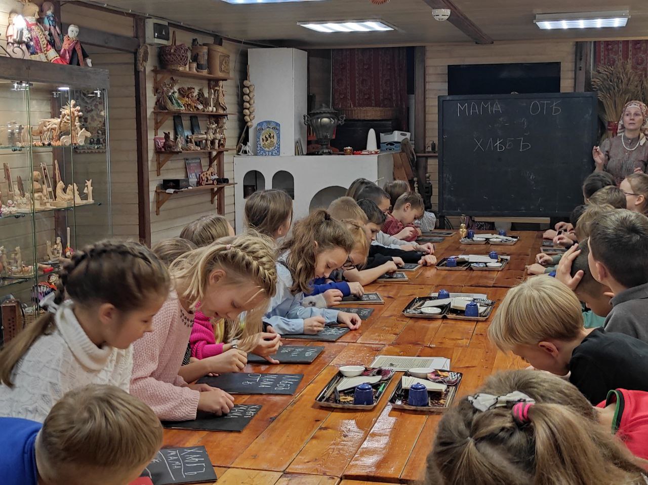 - Самым ярким моментом для детей стала возможность примерить одежду крестьянских детей. Смотреть на них в такой одежде — это как взглянуть на старую фотографию! А еще они с гордостью надели через плечо холщовые сумки, в которых лежали грифельные дощечки и самодельные ручки. Ощущение полного погружения! Писать на тех самых дощечках, которые только что достали из такой сумки, было в сто раз интереснее.