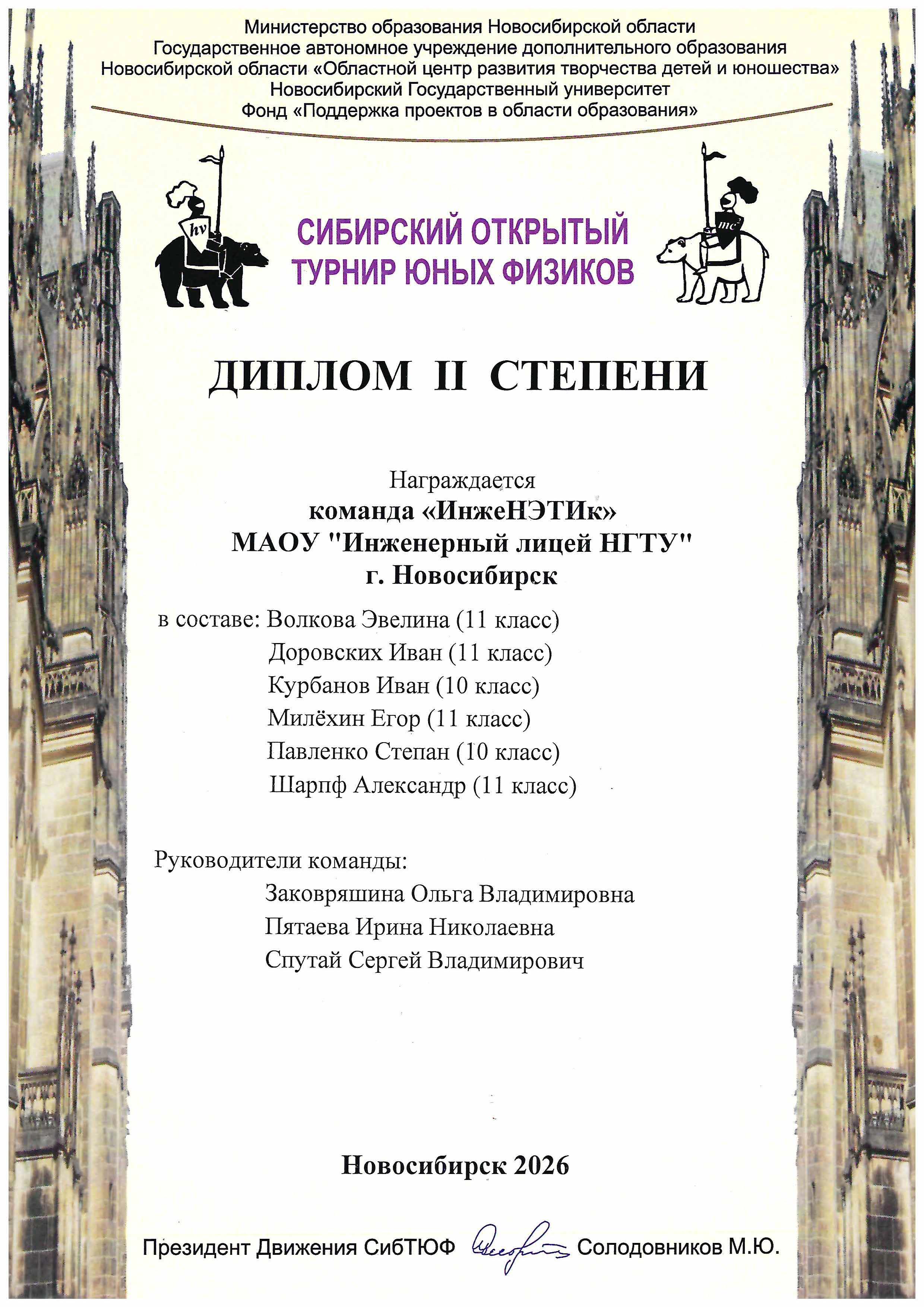 Руководители команд – к.п.н. Заковряшина О.В. , Пятаева И.Н. - учителя физики лицея, а также к.т.н Спутай С.В., заведующий кафедрой ПиТФ НГТУ.