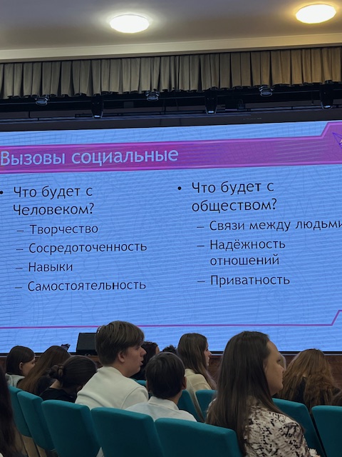 Шахматы или футбол, по мнению ИИ, интеллектуальная игра? Да, футбол. Мы будем деградировать с развитием ИИ? Да, если не осознаем сегодня не только его возможности, но и опасность. Незаметно пролетели 100 мин встречи в вопросах и глубоких, содержательных ответах. Приятным моментом было получение призов и фирменных подарков от «Юниор». Без сомнения, на таких познавательных встречах школьники получают информацию, находят свой вуз, и возможно, будущую профессию.